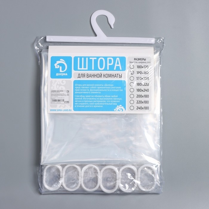 Штора для ванной SL Home, с люверсами, полиэстер, 180×180 см