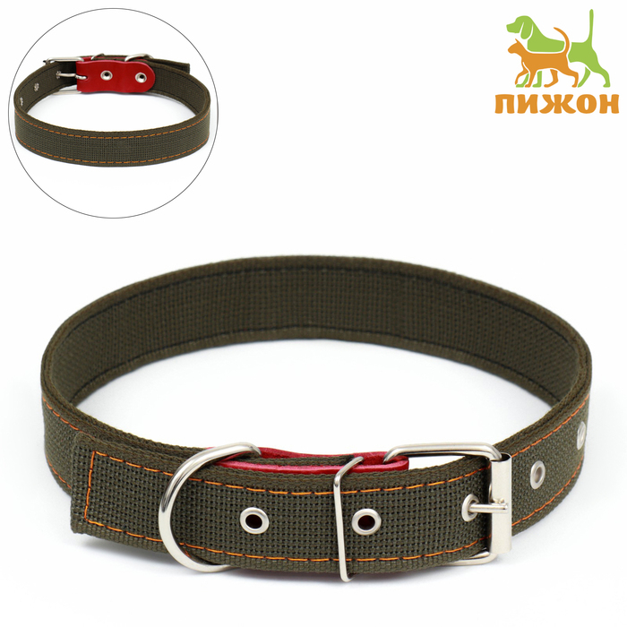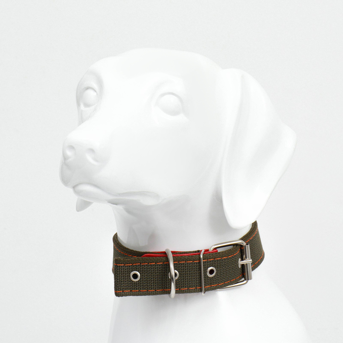 Ошейник брезентовый двухслойный, 72 х 3,5 см, ОШ 45-60 см, хаки