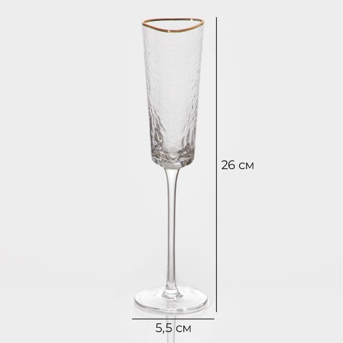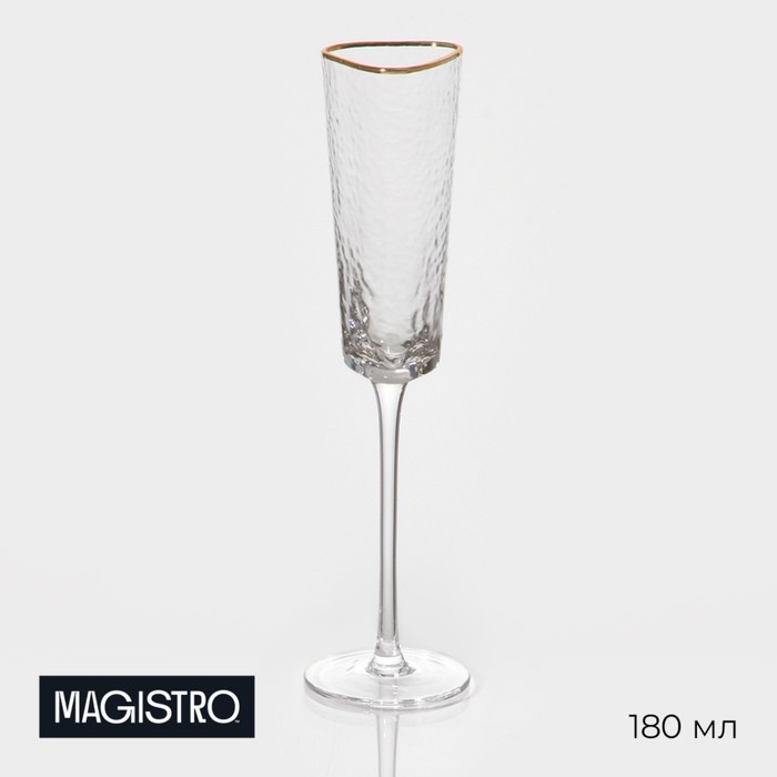 Бокал для шампанского стеклянный Magistro «Жемчуг», 180 мл, 5,5×26 см, с золотой отводкой