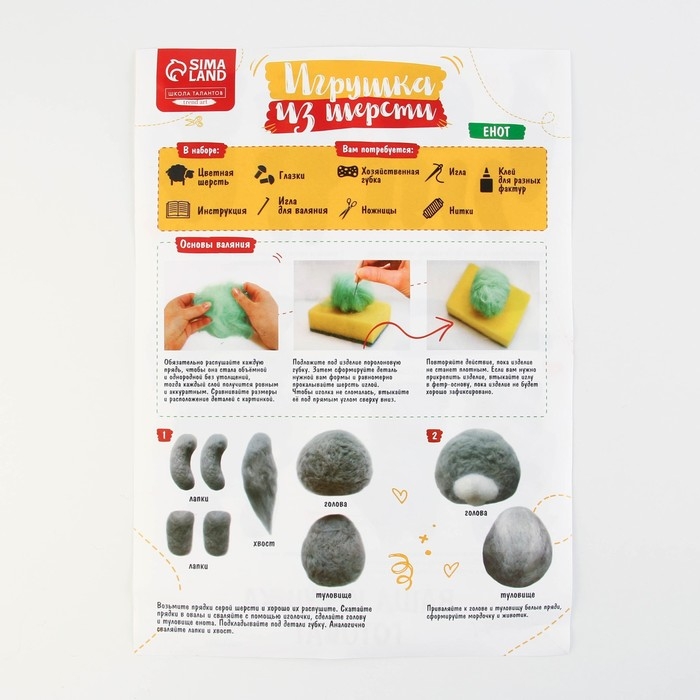 Валяние из шерсти. Игрушка «Енотик», набор для творчества