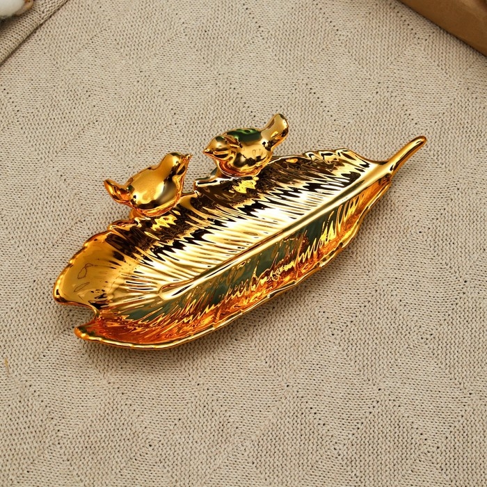 Подставка для мелочей "Пташки" 24х10х5см, золото