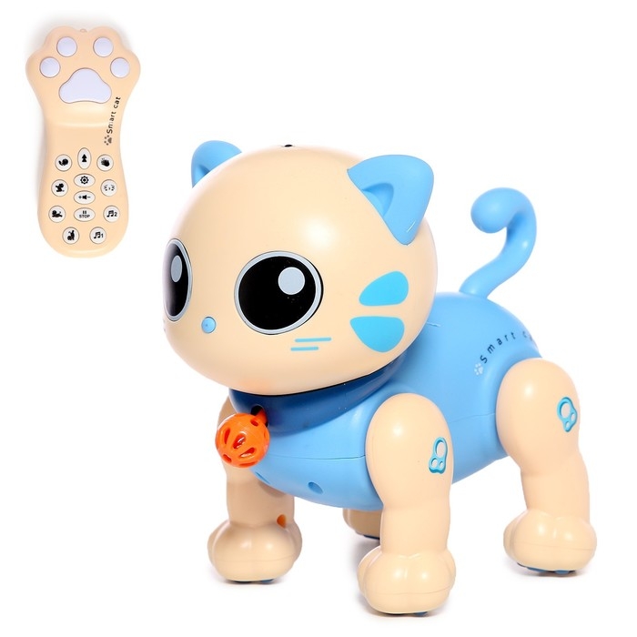 Робот кот «Пультовод» ZHORYA, на пульте управления, интерактивный: сенсорный, звук, свет, на батарейках, на русском языке, синий