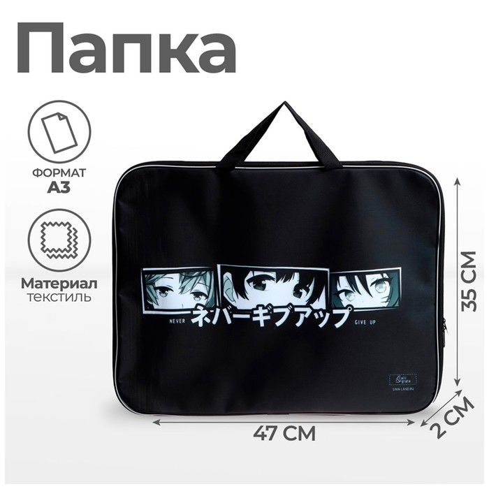 Папка для чертежей и рисунков А3, 470 х 350 х 20 мм, с ручками, текстильная, Calligrata "Аниме Глаза"