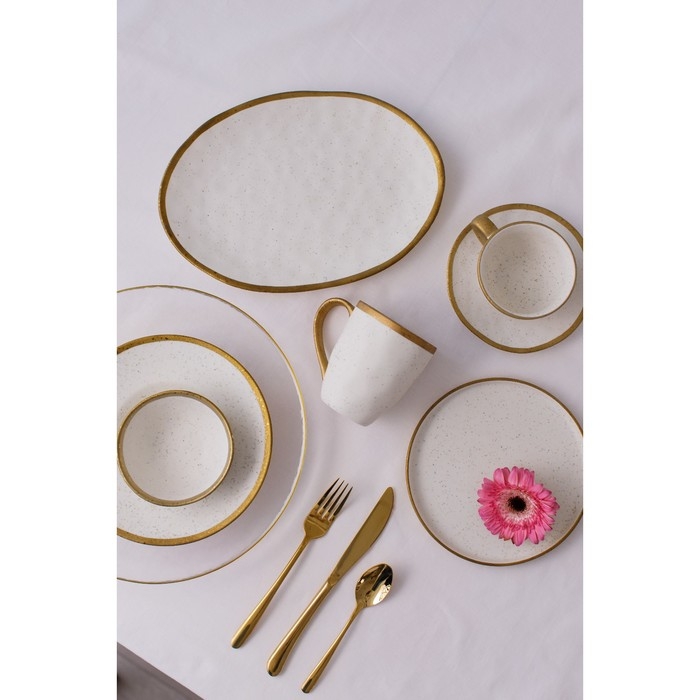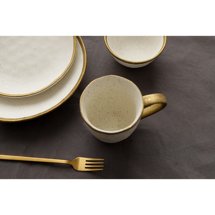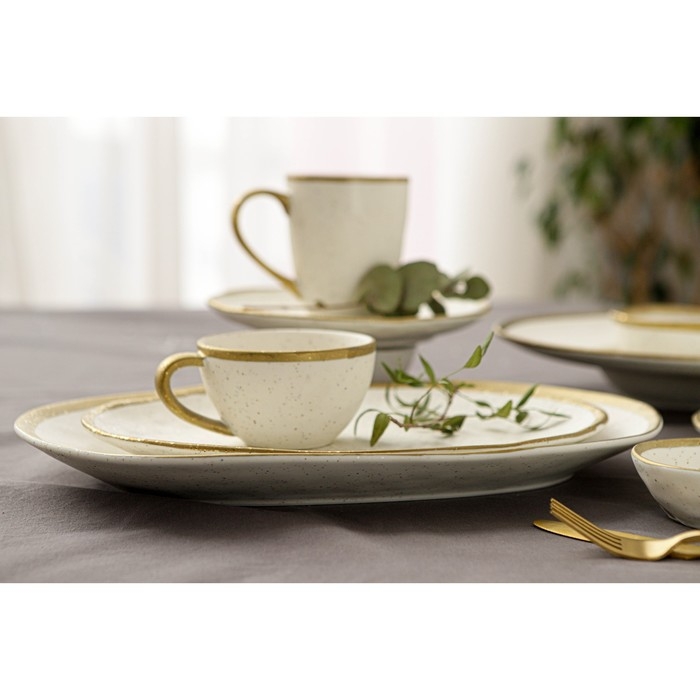 Посуда серии Magistro Poursephona — это современная фарфоровая посуда. В оформлении серии превалируют два цвета – бежевый оттенок фарфора и роскошное золото в виде широкой окантовки предметов. Идеально подходит как для формального обеда, так и для торжеств по особым случаям. Лаконичные формы, золотая окантовка, разноцветные вкрапления придают изделиям из фарфора одновременно необычный и современный вид.