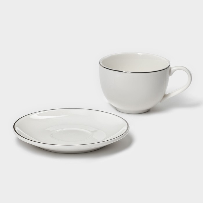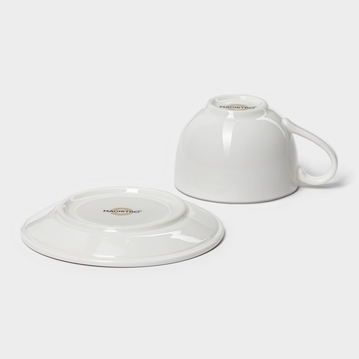 Кофейная пара фарфоровая Magistro «Бланш», 2 предмета: чашка 80 мл, блюдце 13×10,5 см