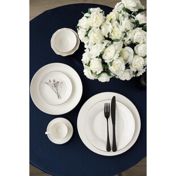 Посуда Magistro серии La Perle покорит лаконичным дизайном и молочной белизной натурального фарфора. Современная форма предметов подчеркнута элегантной серебряной окантовкой. Изделия из линейки La Perle можно использовать как в повседневной, так и в праздничной сервировке. Посуда станет чудесным подарком и дополнит коллекцию столового семейного фарфора.