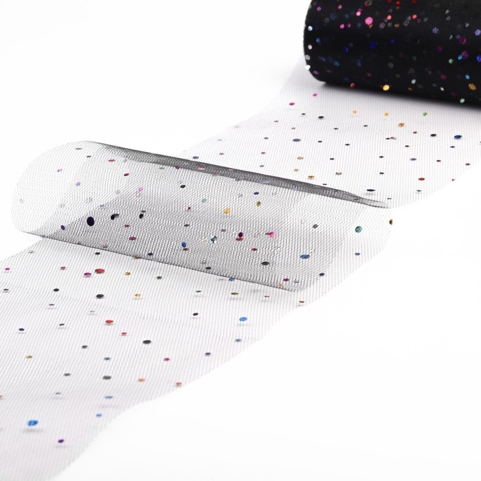 Фатин с разноцветными блёстками, 15 см, 11 ± 1 г/кв.м, 23 ± 1 м, цвет чёрный №40