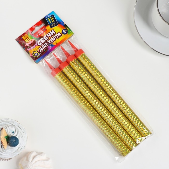 Свечи фонтаны для торта "Золотые искры", 18 см, 80 секунд, 4 шт