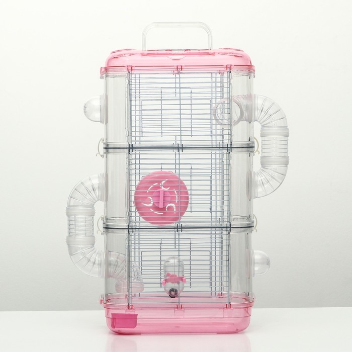 Клетка для грызунов с туннелем и наполнением, 32 х 21 х 55, см, розовая