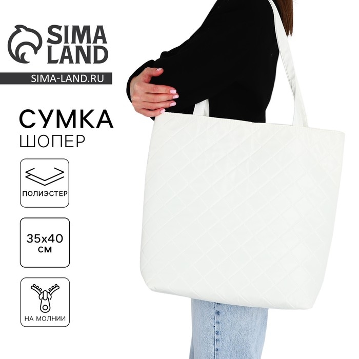 Шопер женский болоньевый, 40х35х7см, белый цвет