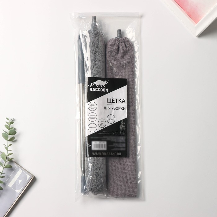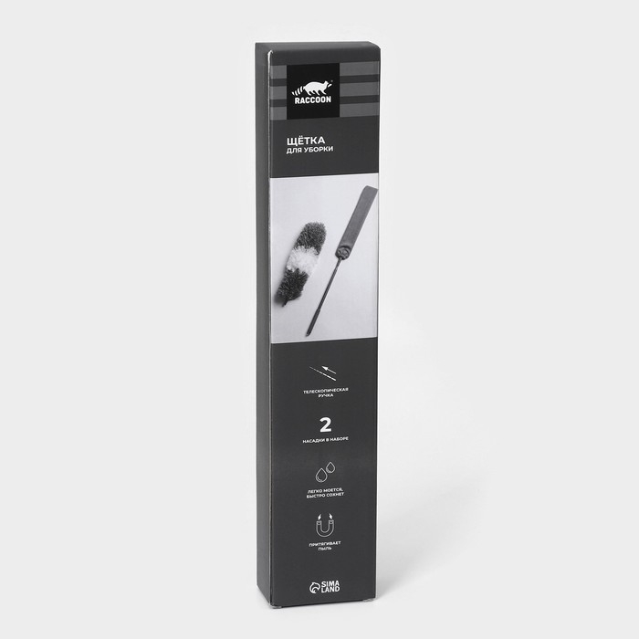 Щётка для пыли Raccoon, плоская насадка 40×7,5 см, пушистая насадка 41×13 см, телескопическая ручка 230 см