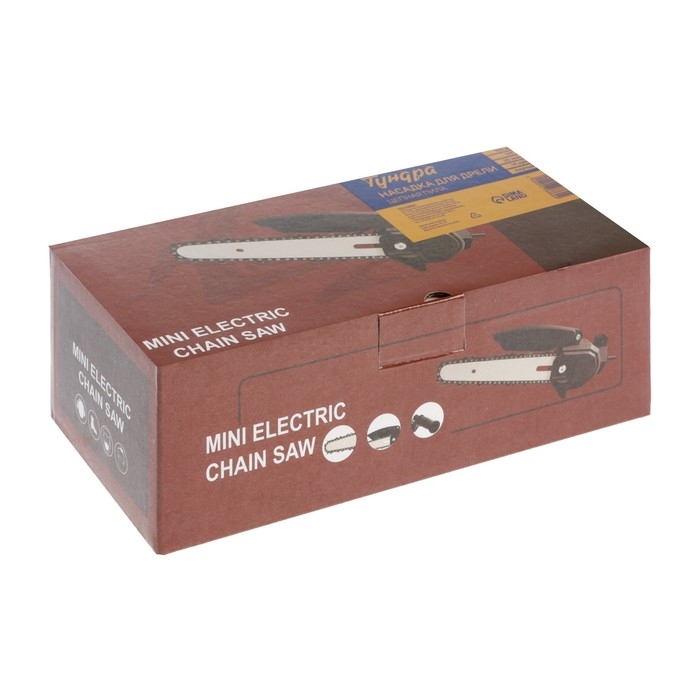 Насадка для дрели ТУНДРА, цепная пила, 100 мм, 1/4", 28 звеньев, 14 зубьев, круглый зуб