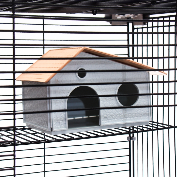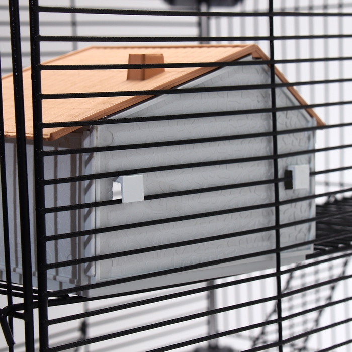 Габариты клетки составляют 42 х 30 х 65 см (длина х ширина х высота), что обеспечивает достаточно места для активности и комфорта грызунов.