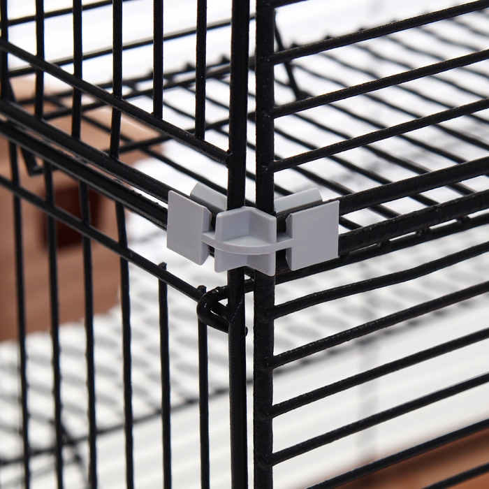 Материалы, использованные для изготовления клетки, безопасны для животных и не содержат вредных веществ. Клетка обладает прочной конструкцией, которая обеспечивает безопасность и долговечность.