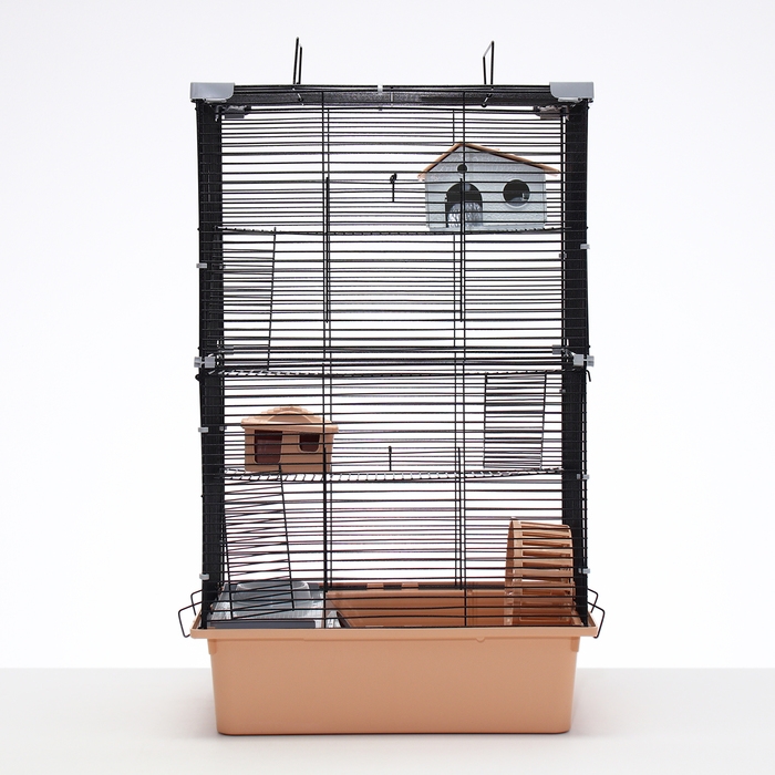 Клетка для грызунов "Пижон" №11, 4 этажа, разборная, 42 х 30 х 65 см (+2 домика,2 колеса,миска), беж