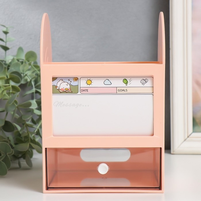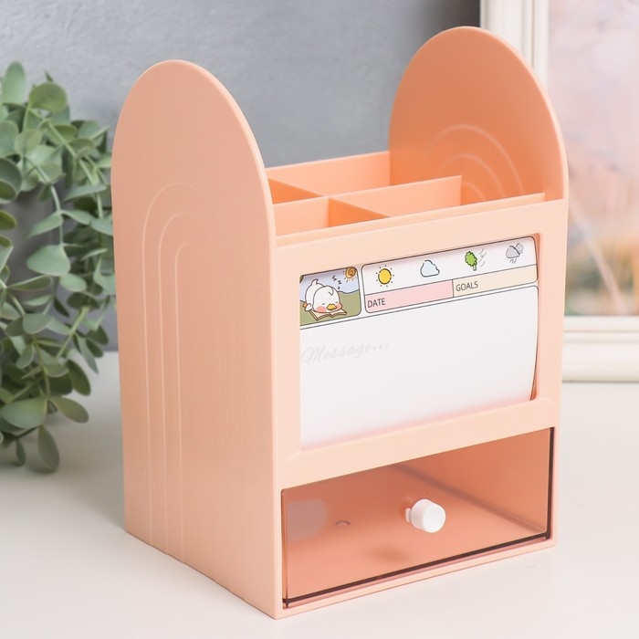 Шкатулка-органайзер пластик "Лаконичность" розовая 12х14,2х21 см