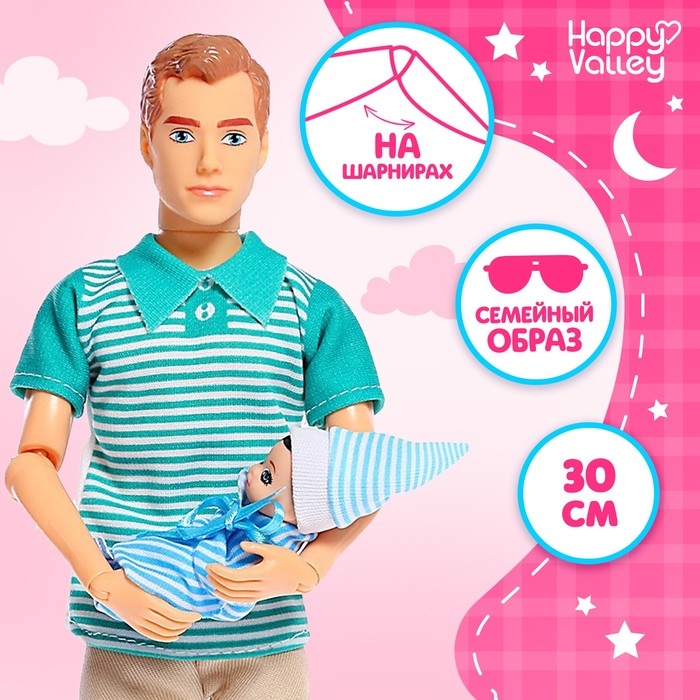 Набор с куклой-папой и малышом станет отличным подарком для вашей принцессы! Ребёнок сможет поиграть в семейную жизнь, попробовать себя в роли мамы или дополнить набор любимой куклой-мамой и создать счастливую кукольную семью!