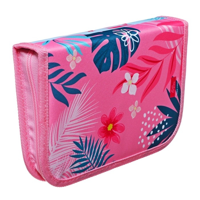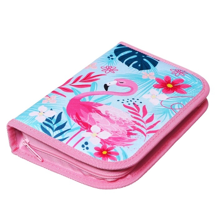 Пенал 3 секции, вкладка внутри, 140 х 210 х 40 мм, тканевый, Calligrata TOP Block "Фламинго"