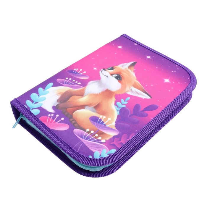 Пенал 3 секции, вкладка внутри, 140 х 210 х 40 мм, тканевый, Calligrata TOP Block "Лисичка"