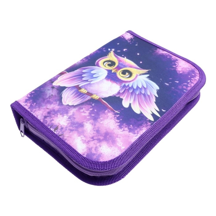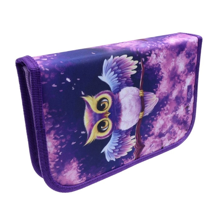 Пенал 3 секции, вкладка внутри, 140 х 210 х 40 мм, тканевый, Calligrata TOP Block "Совушка"