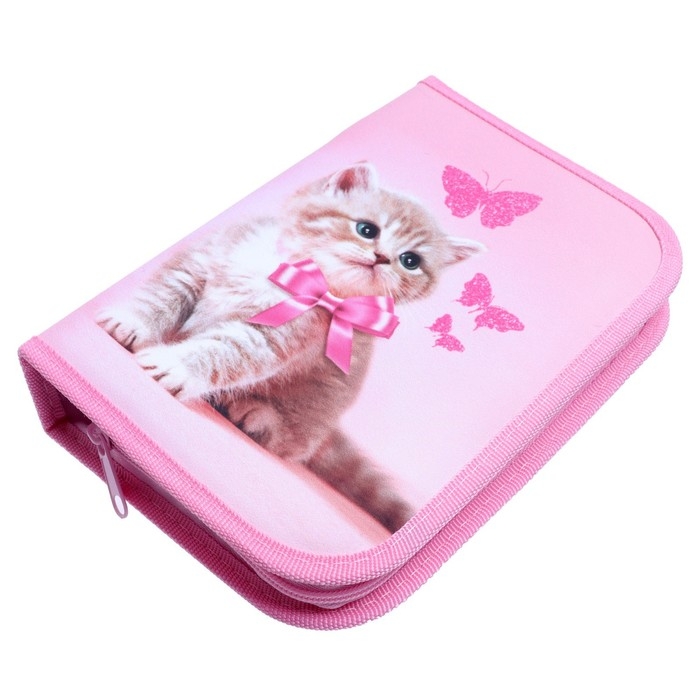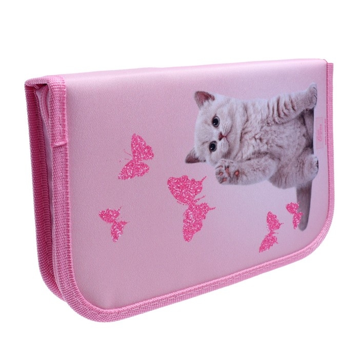 Пенал 3 секции, вкладка внутри, 140 х 210 х 40 мм, тканевый, Calligrata TOP Block "Котенок"