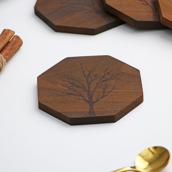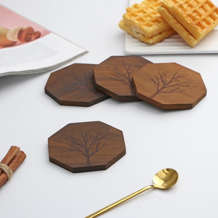 Набор подставок под кружки Magistro «Древо», 4 шт, акация