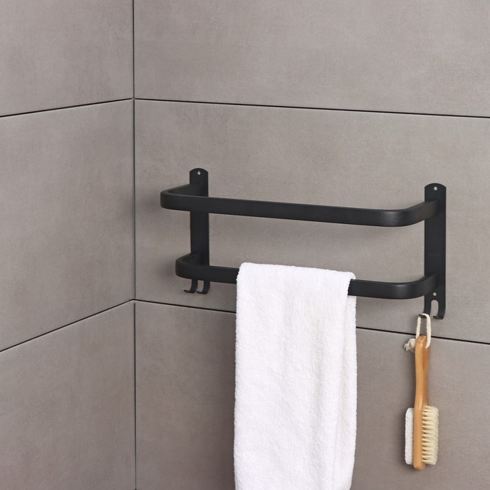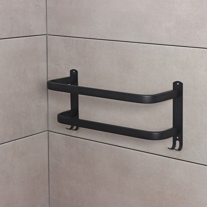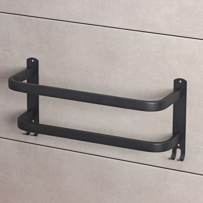 Держатель для полотенец двойной, 39,5 см, 2 крючка, нержавеющая сталь, цвет чёрный