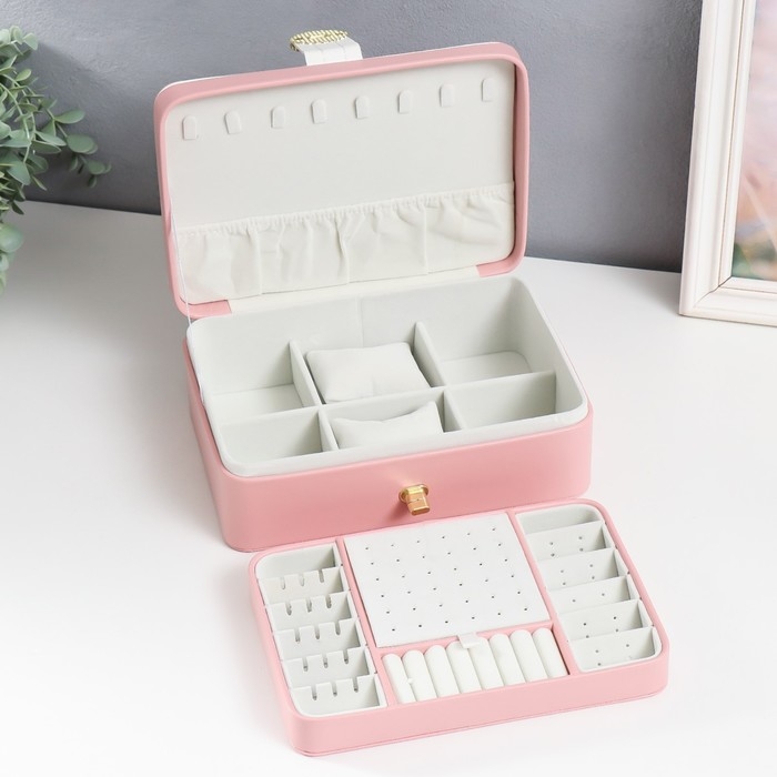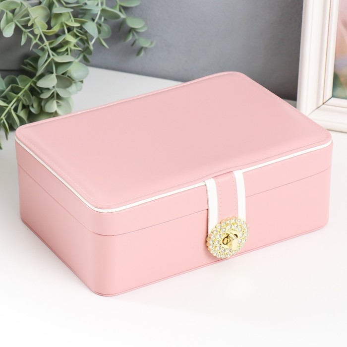 Шкатулка кожзам для украшений "С пряжкой" розовая 24х18,5х9 см