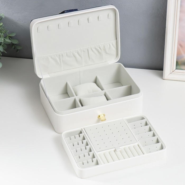 Шкатулка кожзам для украшений "С пряжкой" белая 24х18,5х9 см