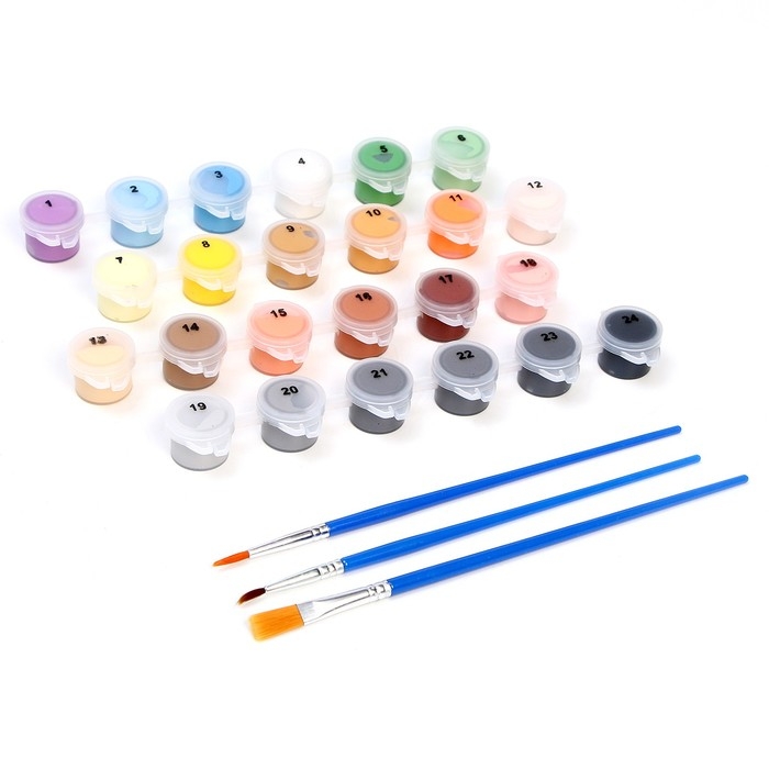 - В набор входят все необходимые оттенки красок. Баночки пронумерованы.