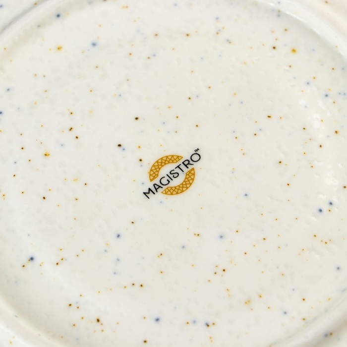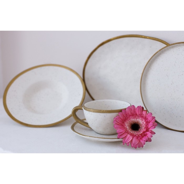 Посуда серии Magistro Poursephona — это современная фарфоровая посуда. В оформлении серии превалируют два цвета – бежевый оттенок фарфора и роскошное золото в виде широкой окантовки предметов. Идеально подходит как для формального обеда, так и для торжеств по особым случаям. Лаконичные формы, золотая окантовка, разноцветные вкрапления придают изделиям из фарфора одновременно необычный и современный вид.