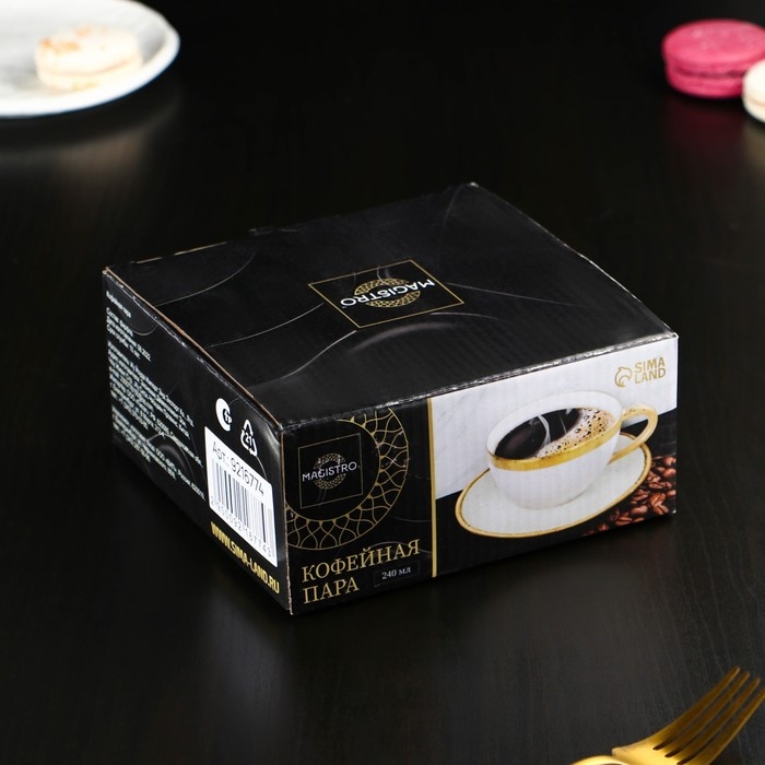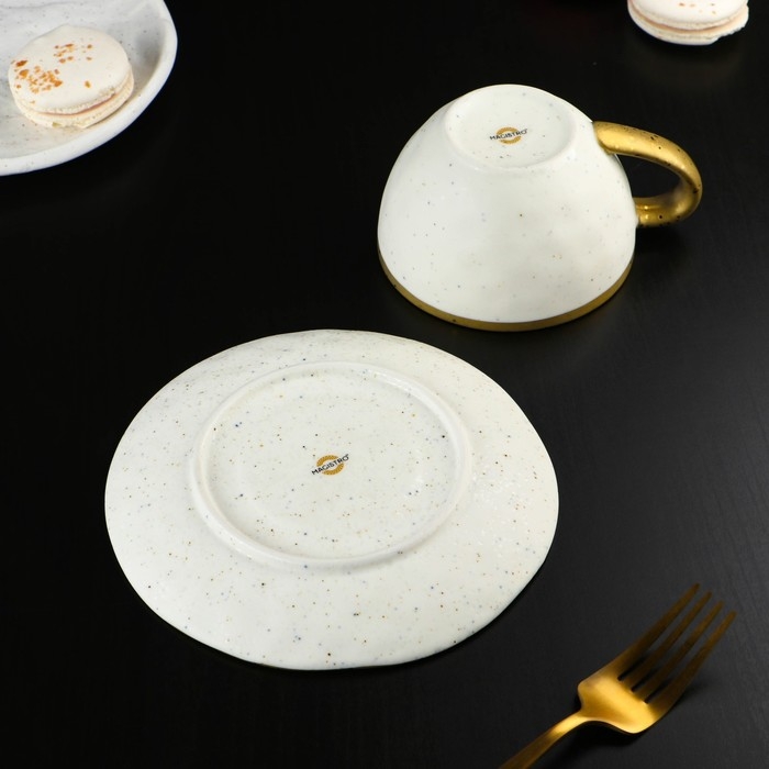 Чайная пара фарфоровая Magistro Poursephona, 2 предмета: чашка 240 мл, блюдце d=16 см, цвет белый