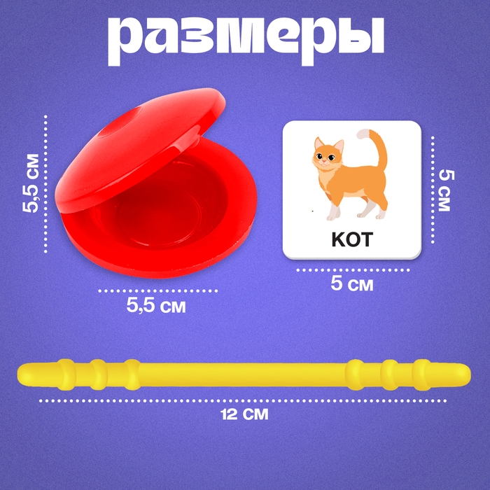 Внутри вы найдёте 4 кастаньеты, набор палочек и 20 слов.