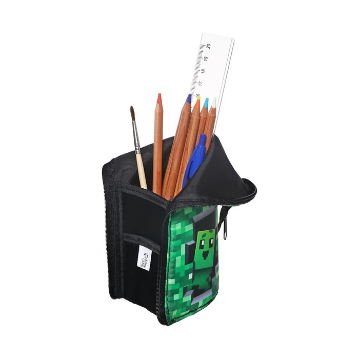 Пенал имеет оптимальный размер и вмещает в себя стандартный набор канцелярских принадлежностей для школы и творчества, в том числе линейку до 20 см.
