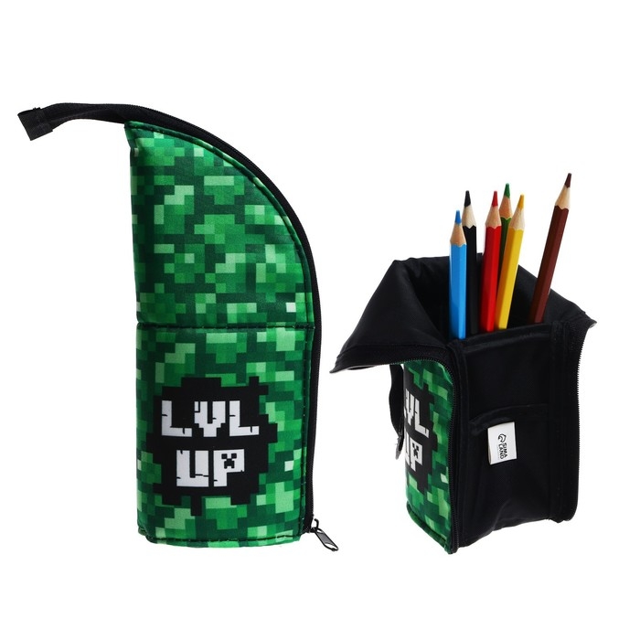 Пенал тубус-подставка, 85 х 210 х 65 мм, мягкий, тканевый, Calligrata, ПМО 12-20 "Пиксели"