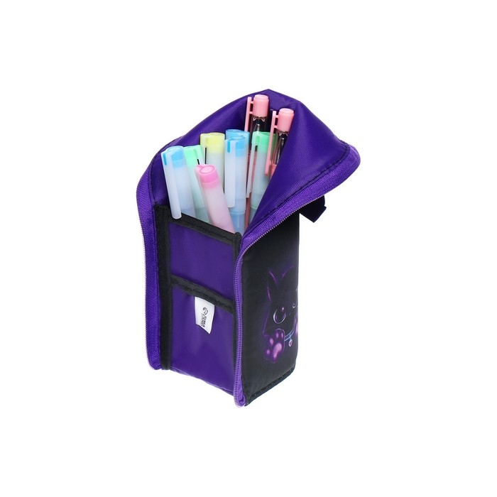 Пенал имеет оптимальный размер и вмещает в себя стандартный набор канцелярских принадлежностей для школы и творчества, в том числе линейку до 20 см.