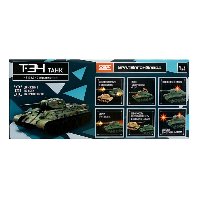 Радиоуправляемый танк Т-34 — боевая машина, которая впечатлит любителя военной техники своим реалистичным дизайном и функциональными характеристиками. Техника имеет уникальную раскраску и оснащена светом и звуком, чтобы сделать игру ещё более захватывающей.