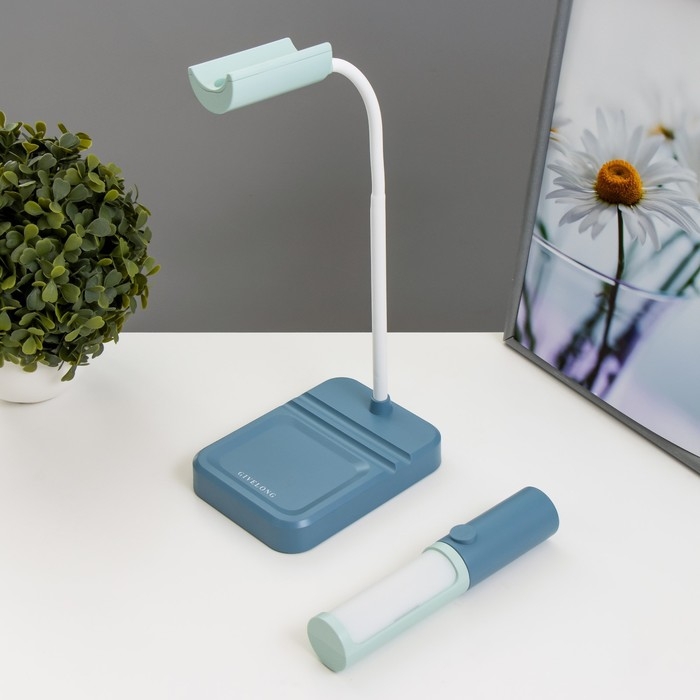 Настольная лампа "Лансер" LED 3,5Вт USB АКБ сине-лазурный 11х15х45 см RISALUX
