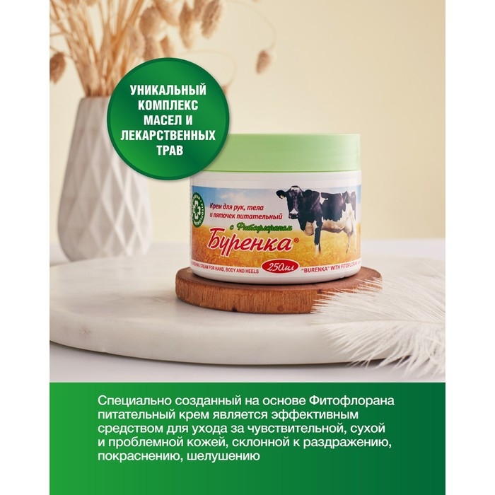 Крем для лица Лошадиная сила Буренка для рук тела и пяточек с фитофлораном, 250 мл
