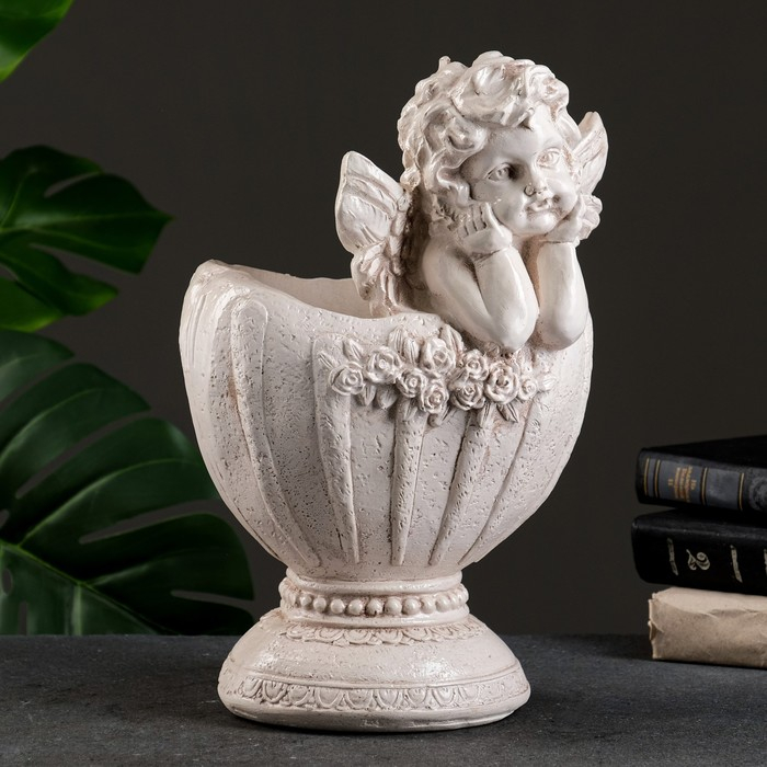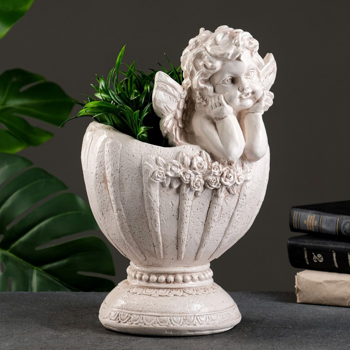 Фигурное кашпо "Ангел в вазе" состаренный, 1,2 л / 20х35х23см