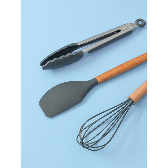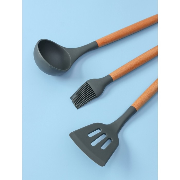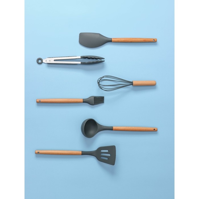 Набор кухонных принадлежностей Доляна «Фаварис», 7 предметов, 34×12,5×12,5 см, цвет серый