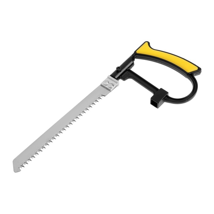 Ножовка изготовлена из прочного металла, который обеспечивает долговечность и надёжность инструмента. Двухкомпонентная ручка инструмента удобно лежит в руке и обеспечивает комфортную работу. Лезвие имеет специальную заточку, позволяющую легко и точно резать различные материалы, включая дерево, пластик и металл.