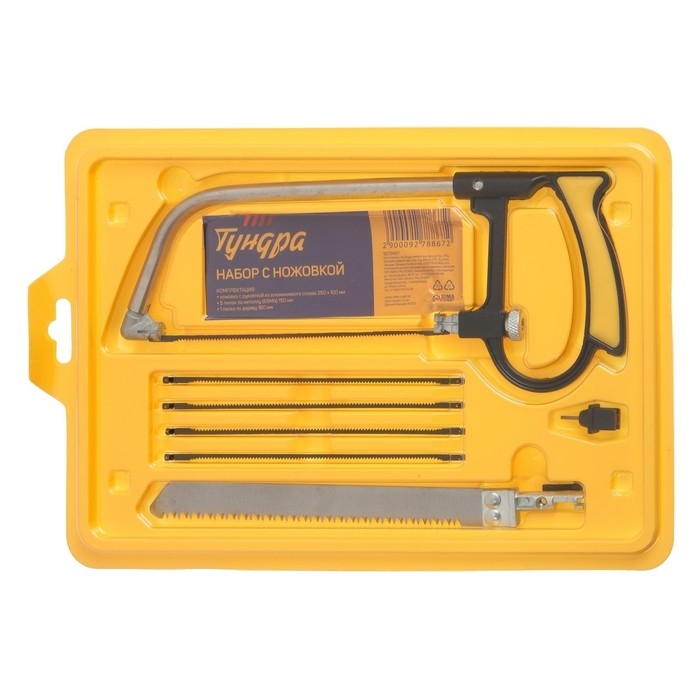 Набор с ножовкой ТУНДРА — это комплект инструментов, предназначенный для различных видов пиления и работы с металлом. Он включает в себя ножовку, универсальную пилку и 5 пилок по металлу.