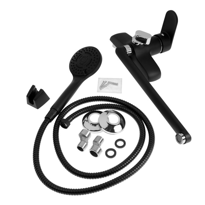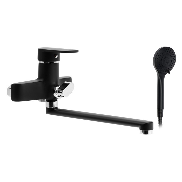 Смеситель для ванны ZEIN Z4052, излив 30 см, картридж 40 мм, с душевым набором, черный/хром