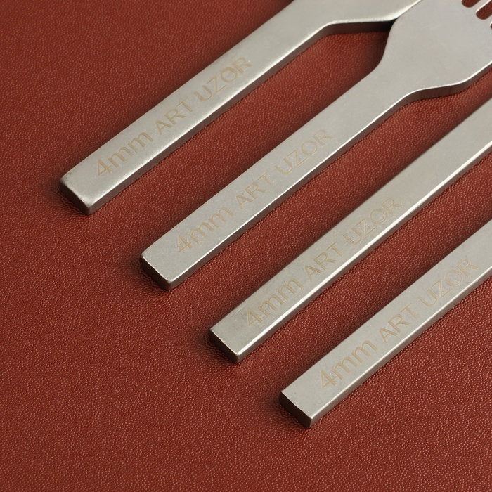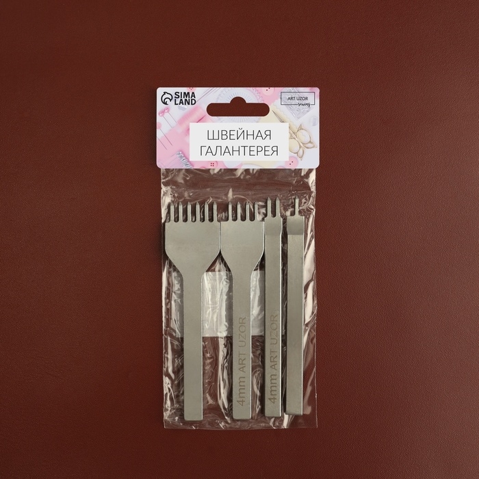 Набор строчных ромбовидных пробойников для кожи, шаг = 4 мм, 4 шт, цвет никель