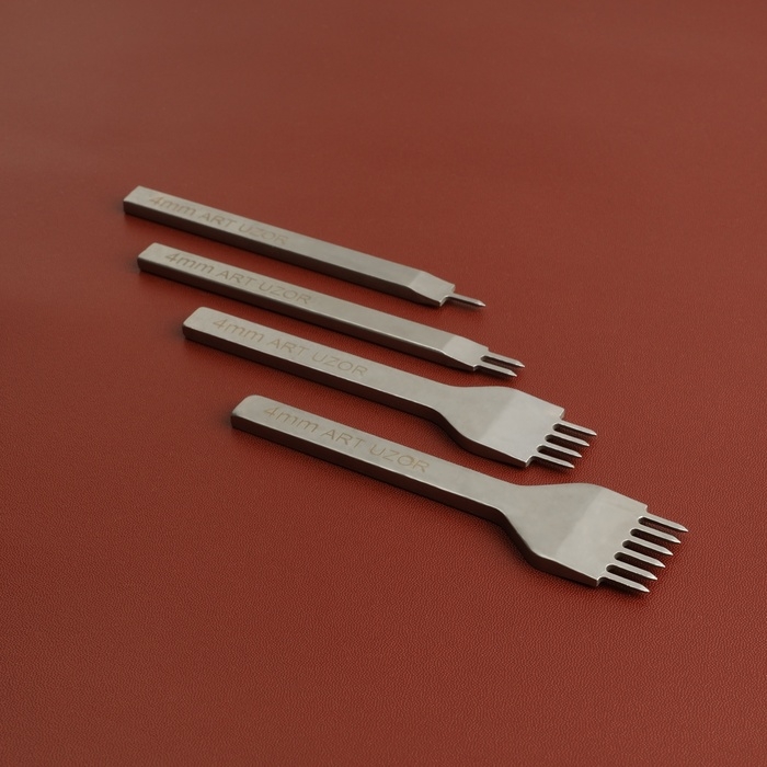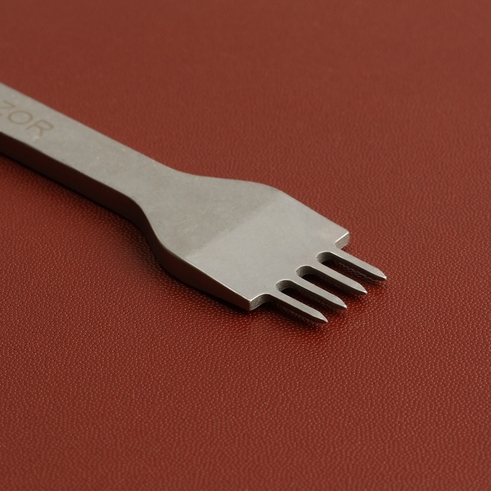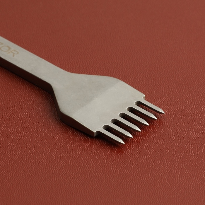 Ромбовидные пробойники необходимы для создания в коже аккуратных и равноудалённых друг от друга отверстий под будущие швы. Такой вид пробойников позволяет создать строчки в форме ёлочки. Пробойники с 1-2 зубьями удобно применять в работе на изгибах и на углах изделий. С 4-6 зубьями экономят время работы при создании длинной строчки.