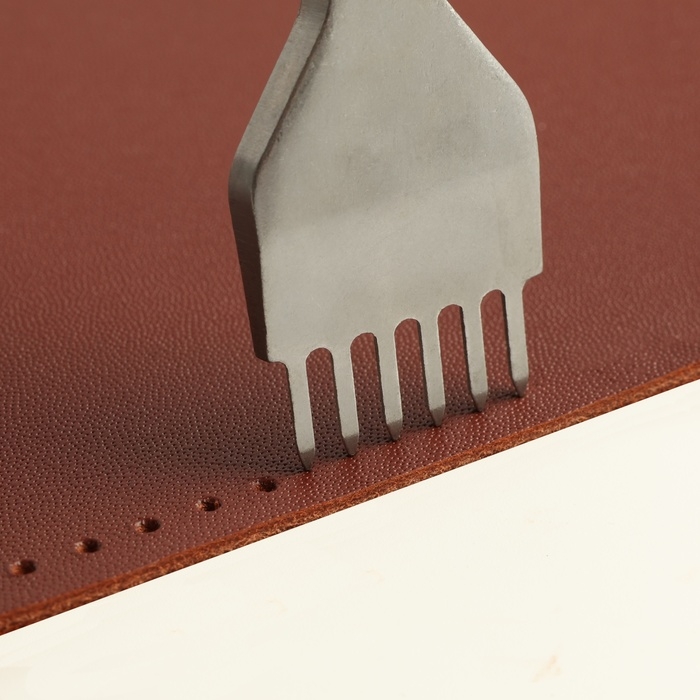 Сохранить пробойник и поверхность стола поможет полимерная плита. Подкладывайте изделие под пробиваемый лист кожи, благодаря этому зубья инструмента останутся острыми долгое время.