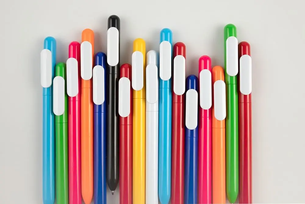 Ручка из глянцевого пластика с белым клипом.