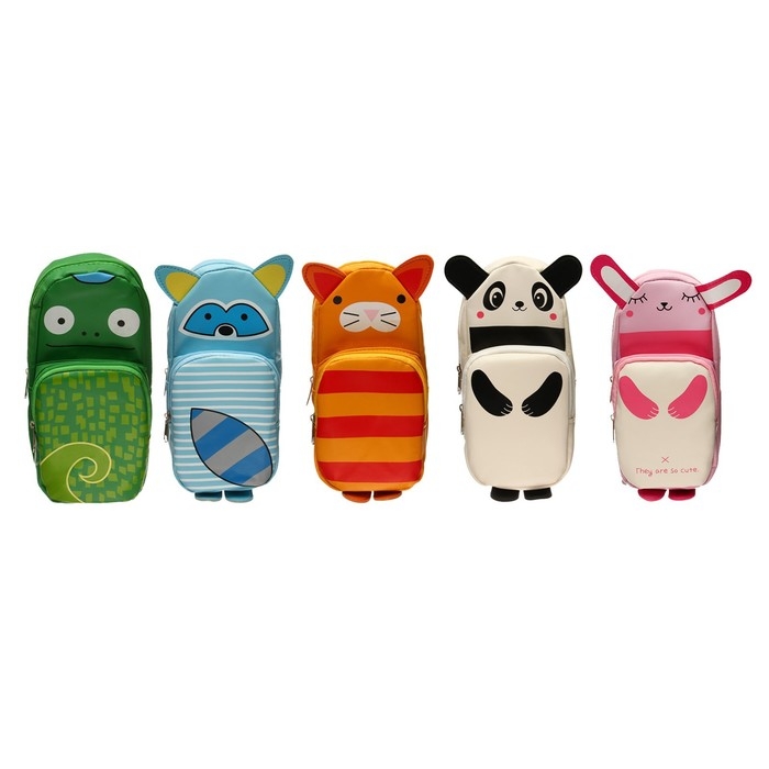 Пенал школьный на молнии Calligrata "Зверушка", 2 отделения, МИКС