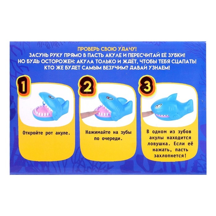 - В одном из зубов акулы спрятана ловушка. Если игрок нажмёт на неё, рот хищной рыбы захлопнется!